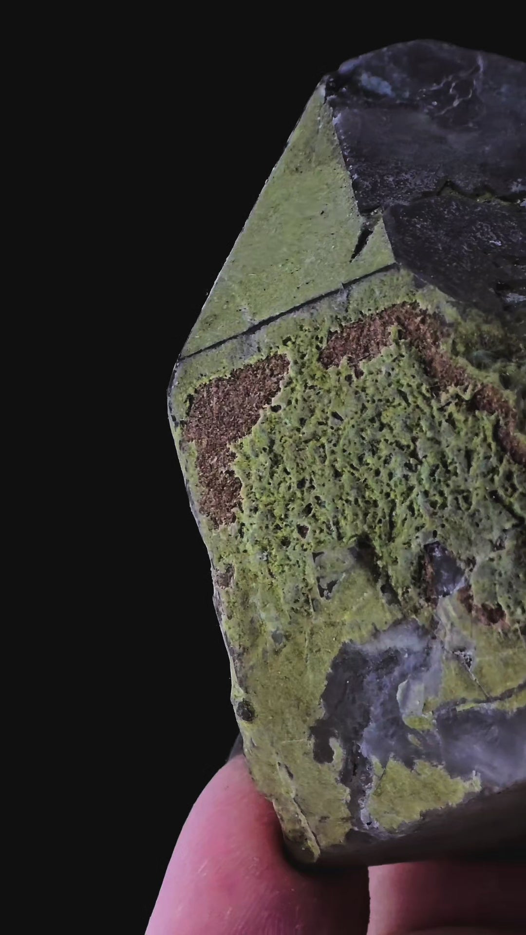 This striking specimen features quartz richly coated with vibrant green malachite, sourced from the famed Messina mine in South Africa. The piece showcases a rare and dramatic contrast of textures: the velvety malachite overlay is unique.